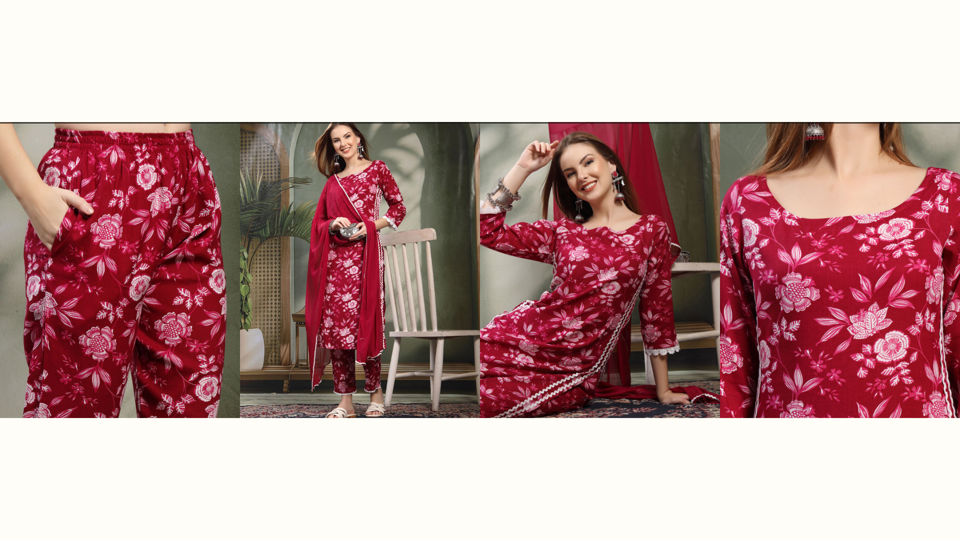 Women Floral Printed Regular Pure Cotton A-Line Kurta with Thread Work, Trousers & Dupatta