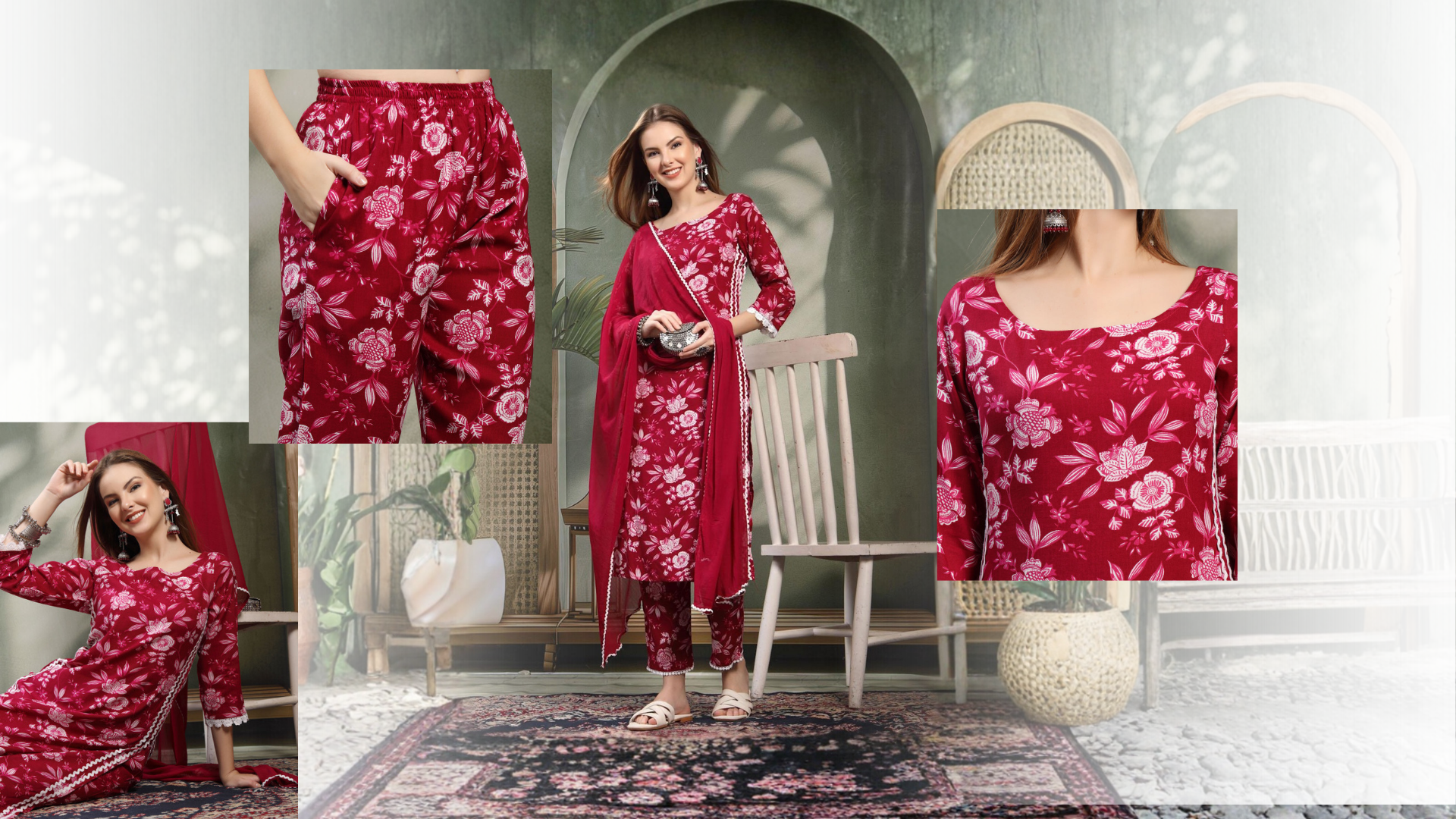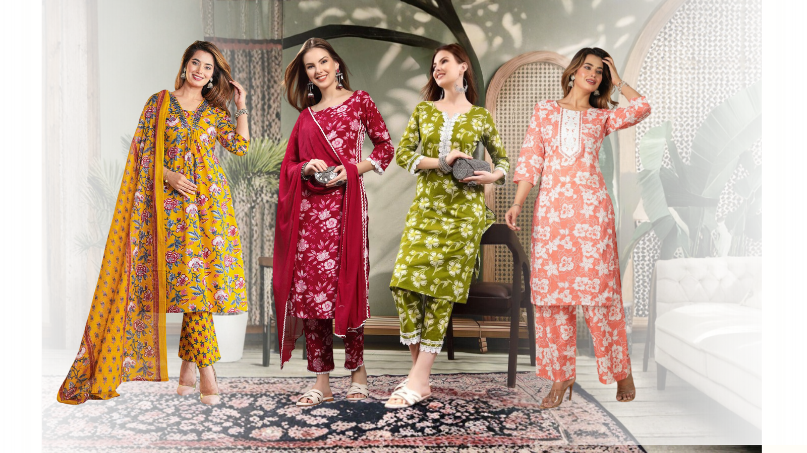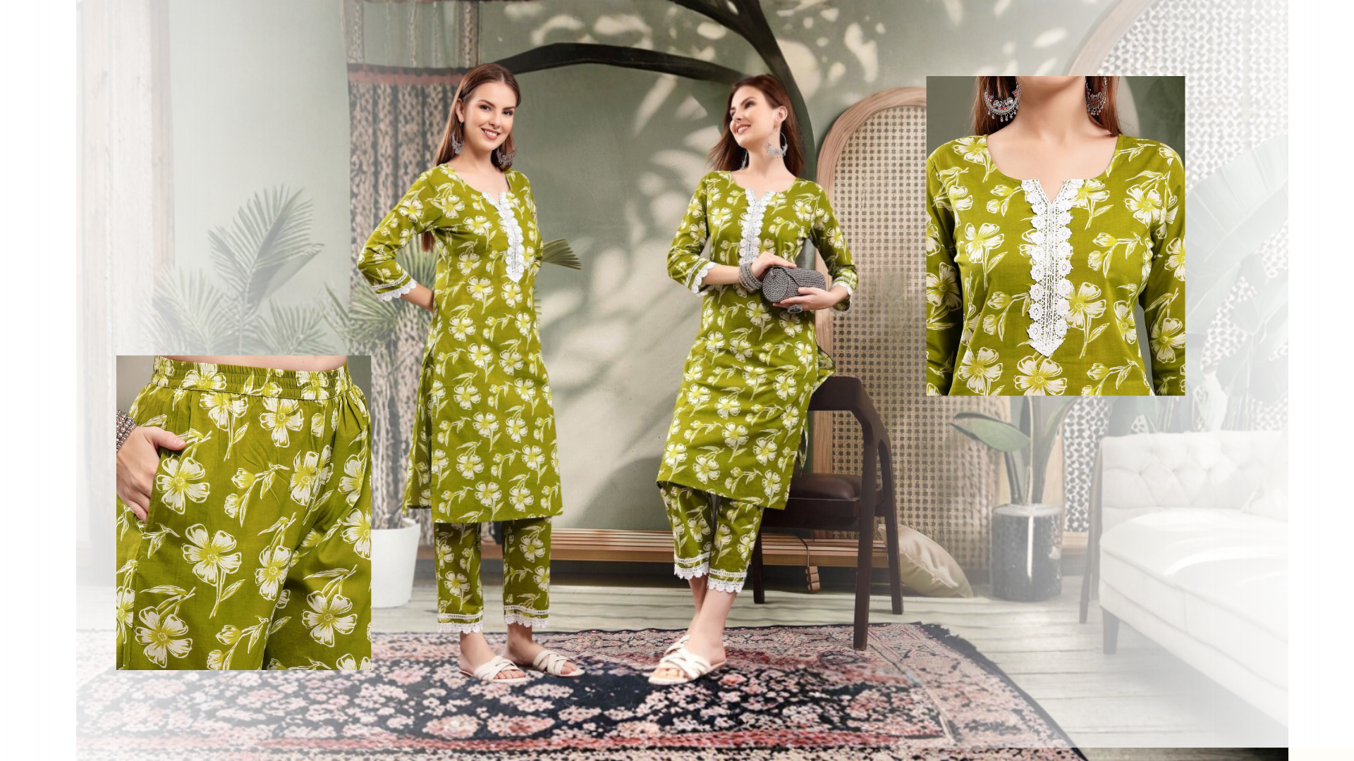 Floral Cotton Kurta Set for Women | Kurta with Pyjamas